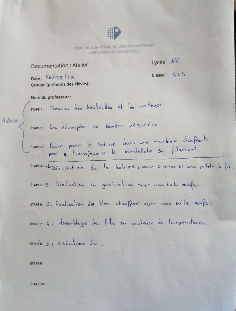 L’atelier pullstruder sert aussi aux élèves à prendre note des différentes étapes et de l’importance de documenter l’action: pour garder une trace, partager l’information utile pour d’autres utilisateurs, documenter pour assimiler les différentes étapes, documenter pour ensuite communiquer, …